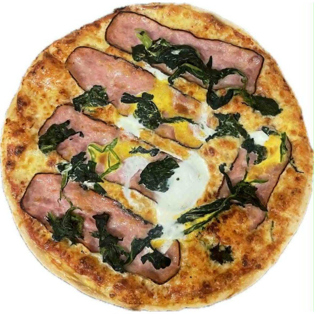 pomodoro, sýr, slanina, špenát, vejce, mozzarella, oregáno