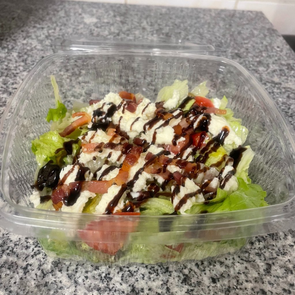 variace salátů, rajčata, olivy, restovaná pancetta, mozzarella, italský dressing, balsamico